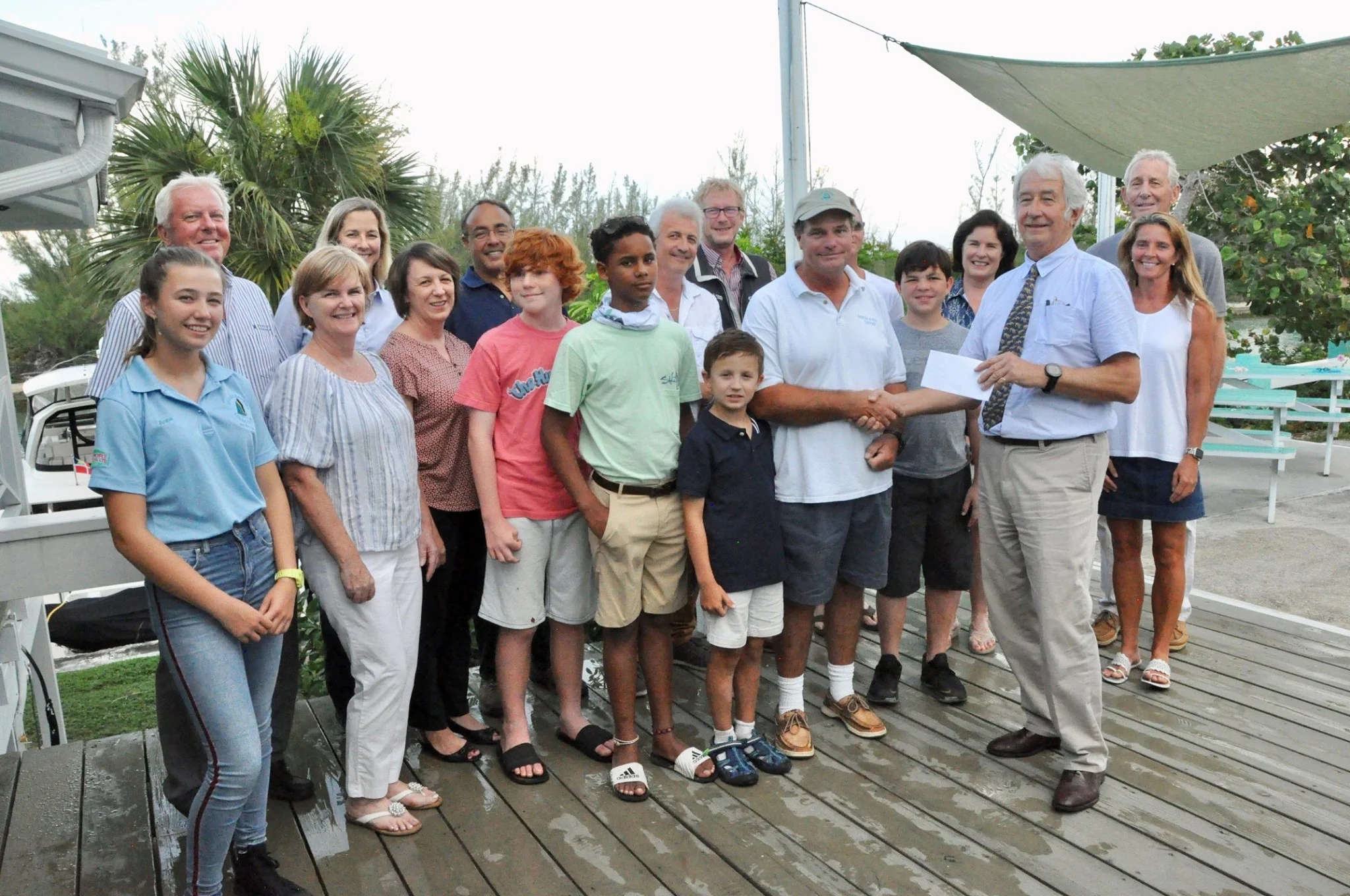 Pictured is Chairman Baker presenting his committee’s donation to Dave Otterbein, Sailing Director GB Sailing Club, also pictured are Members of the GB Sailing Club, Committee Members GBPA Conchman Triathlon Committee and senior and junior members of the GB Sailing Club.